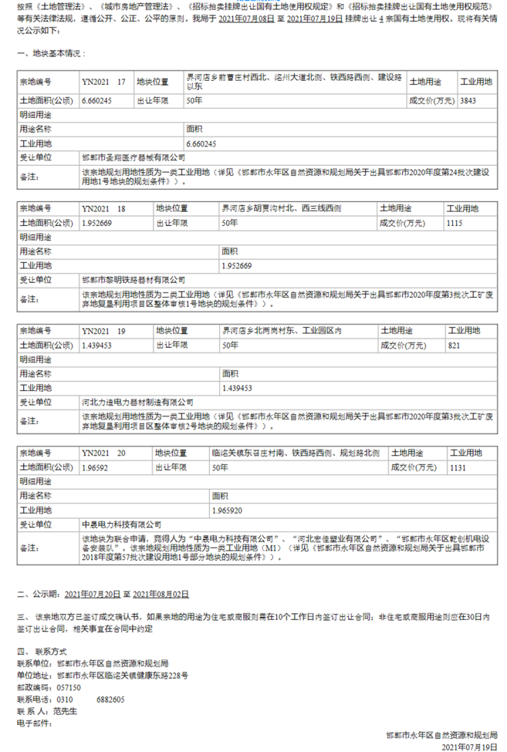 邯郸市永年区自然资源和规划局国有土地使用权招拍挂出让成交公示 YGS202108
