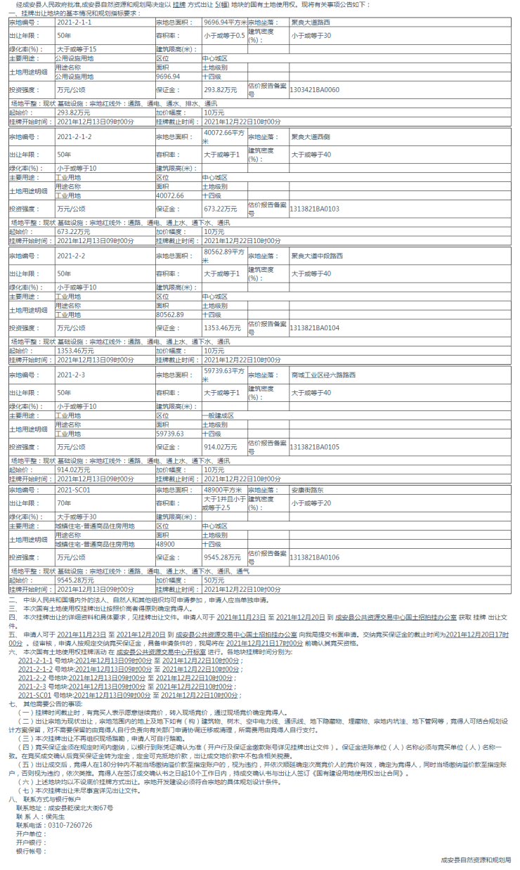 成安县自然资源和规划局国有土地使用权挂牌出让公告(成资规告字[2021]06号)